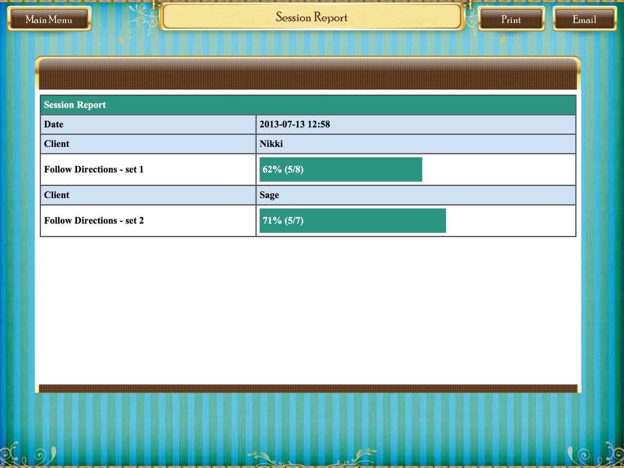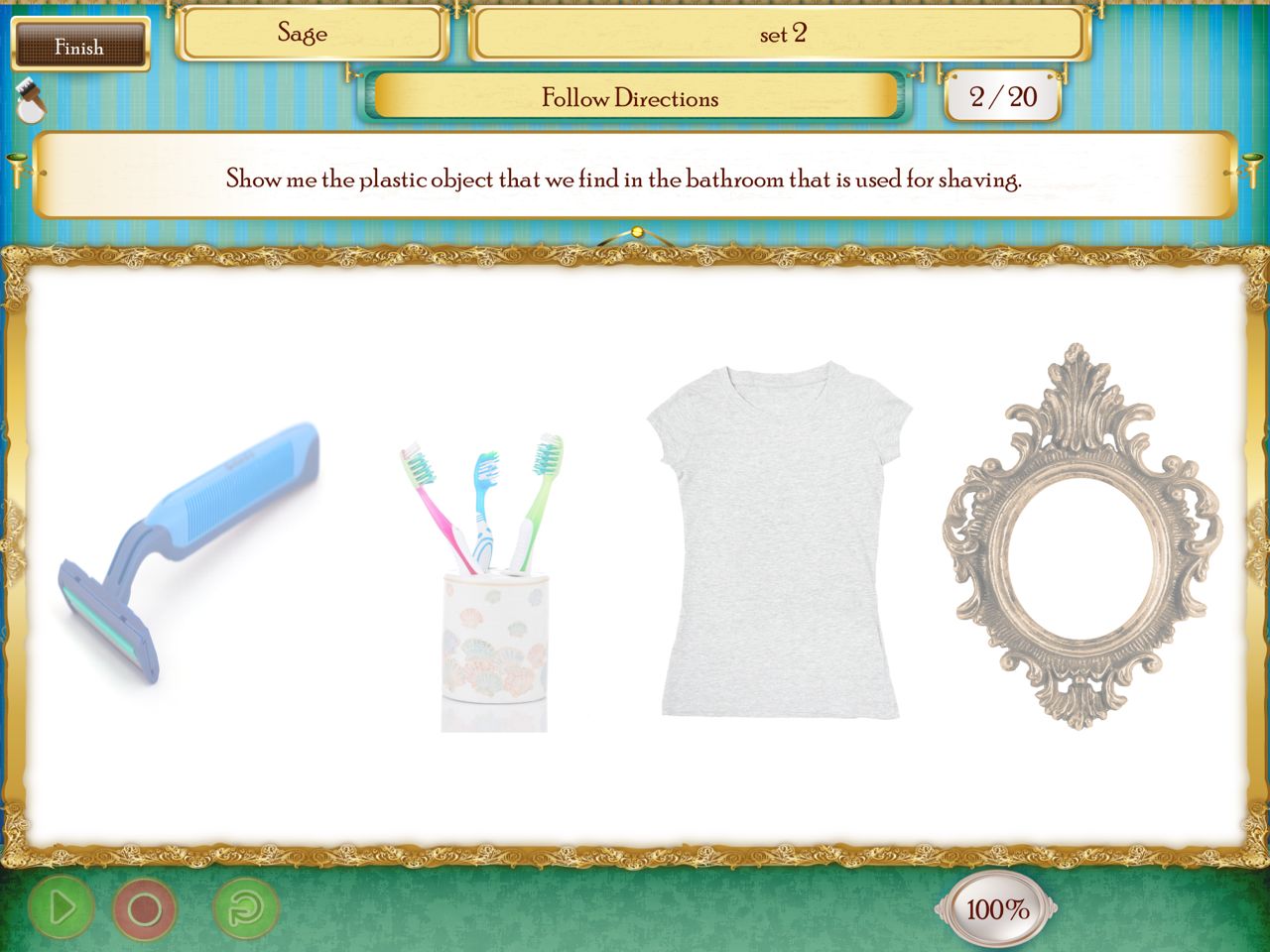 - Expressive language skills can be targeted by asking the child to repeat instruction. The record feature is available on the Follow Directions Task.