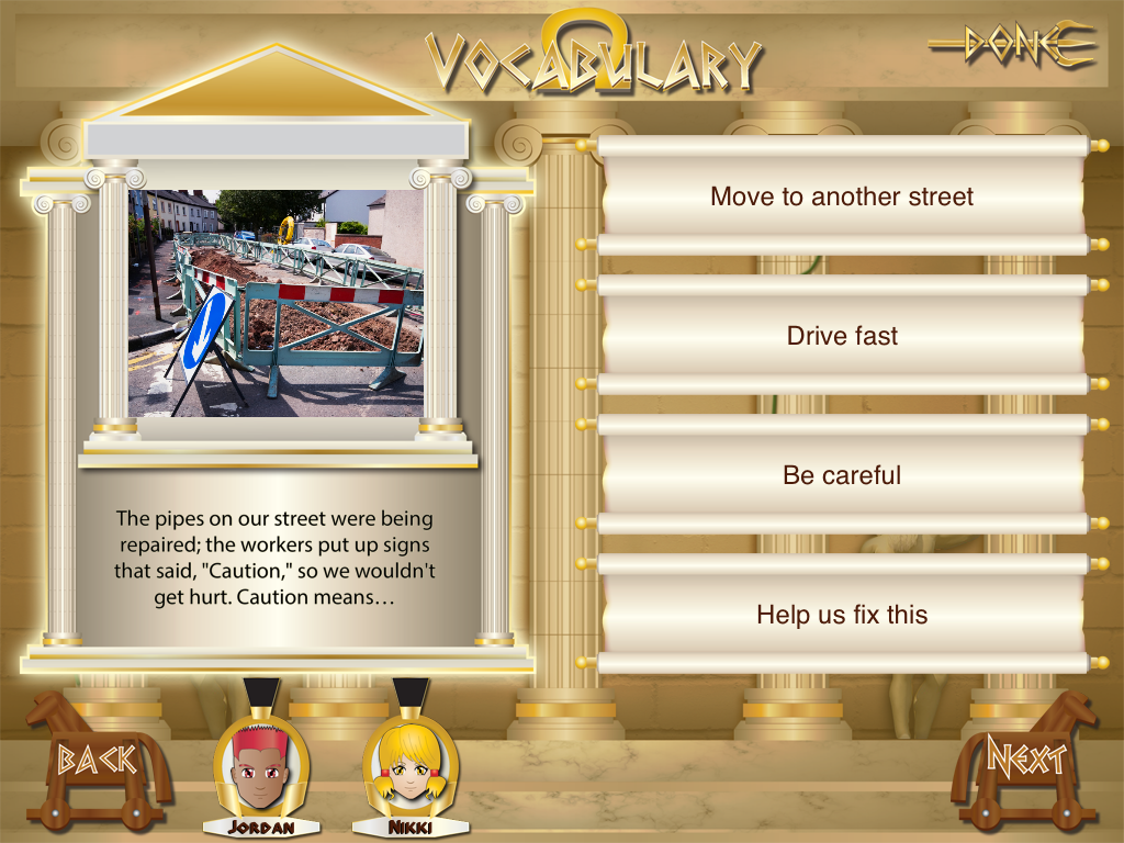 As you answer questions correctly, you earn rewards or “treasures” which are saved and can be accessed on each student’s profile. The treasures represent items from a particular Empire and are great for further vocabulary and language enrichment. You can earn up to 95 possible treasures such as a Roman Laurel Crown, Greek boat and Mayan Calendar.
