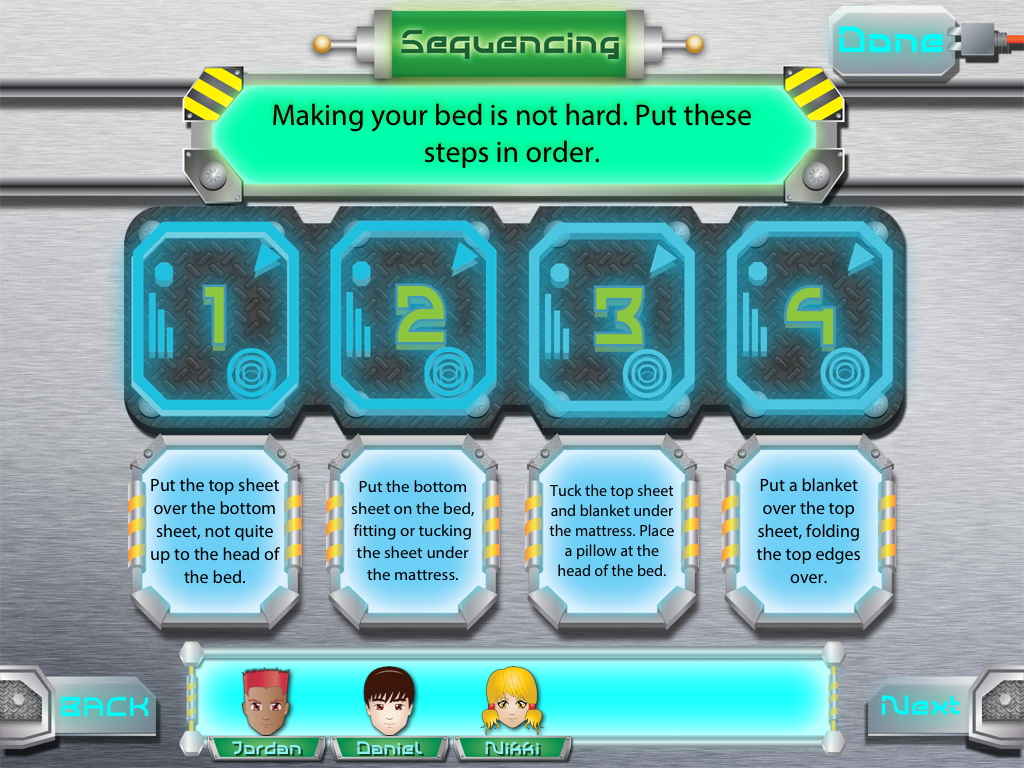 The student is required to sequence events such as activities of daily living, basic concepts, social awareness and short stories.
